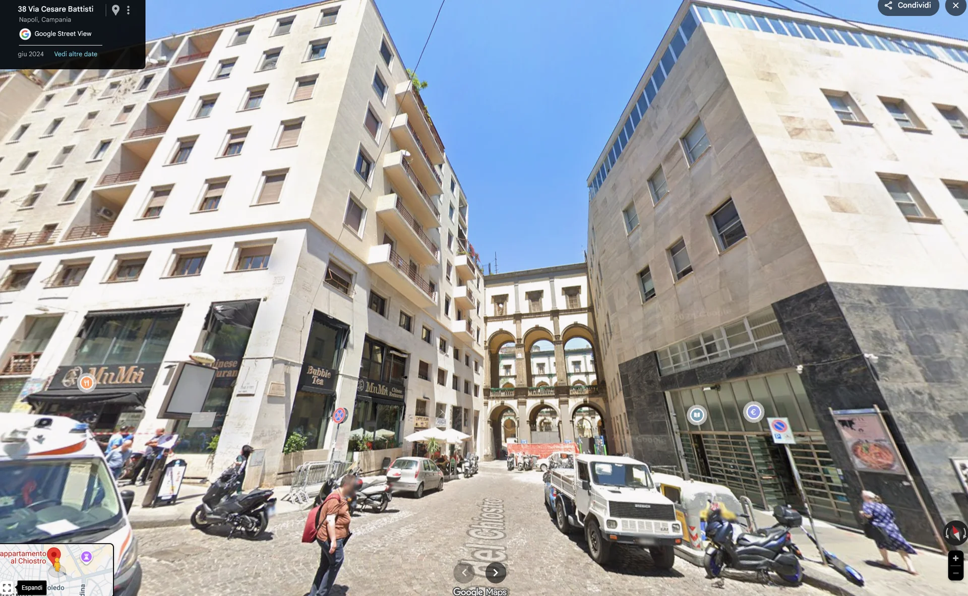 Mini Appartamento al Chiostro è una casa vacanza situata nel centro storico di Napoli, a pochi passi da Via Toledo, dai Quartieri Spagnoli e dai principali luoghi di interesse storico e culturale della città. La struttura è ideale per coppie e famiglie che desiderano vivere Napoli da una posizione strategica, con tutti i comfort e la comodità di avere tutto a portata di mano. Prenotando direttamente dal sito è possibile richiedere disponibilità immediata e ricevere informazioni rapide senza costi aggiuntivi.