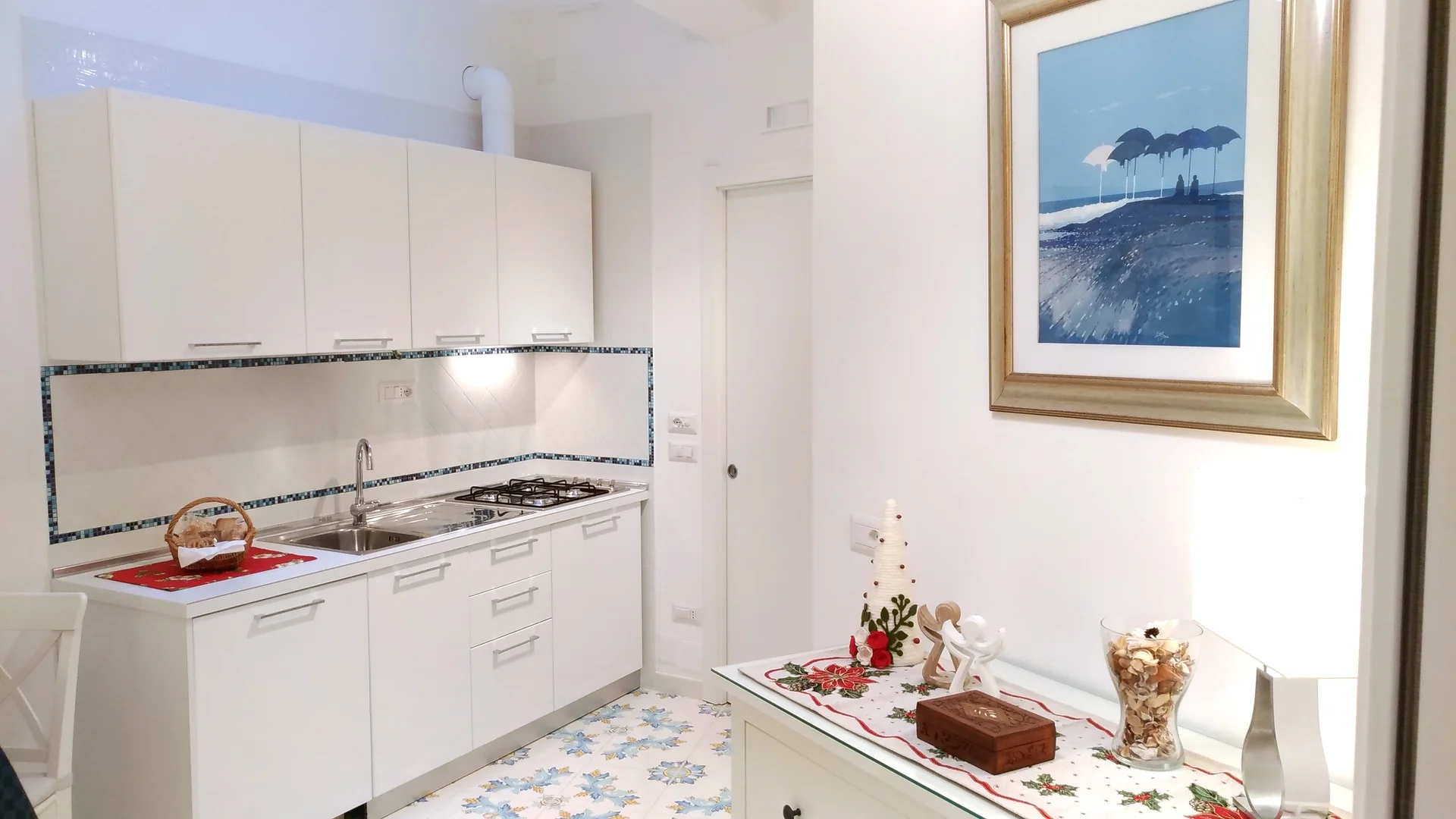 L'appartamento è dotato di una cucina completa e attrezzata per preparare pasti in autonomia durante il soggiorno